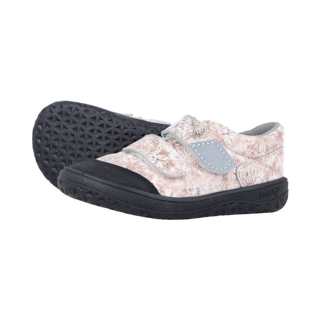 S botami Jonap B22 je konec s otravným a náročným šněrováním. Dvojici suchých zipů zvládnou zapnout menší děti i rodiče ve spěchu. Horní z nich má navíc bezpečností reflexní pásek, který pomůže zviditelnit vaši ratolest i v šeru nebo tmě. Absence tkaniček však nebrání tomu, abyste botu dobře utáhli kolem kotníku, a poskytla tak dítěti potřebnou oporu. V botách Jonap B22 se bude dětem pohodlně chodit, běhat i skákat hlavně ve městě. Jsou ušité v ČR.